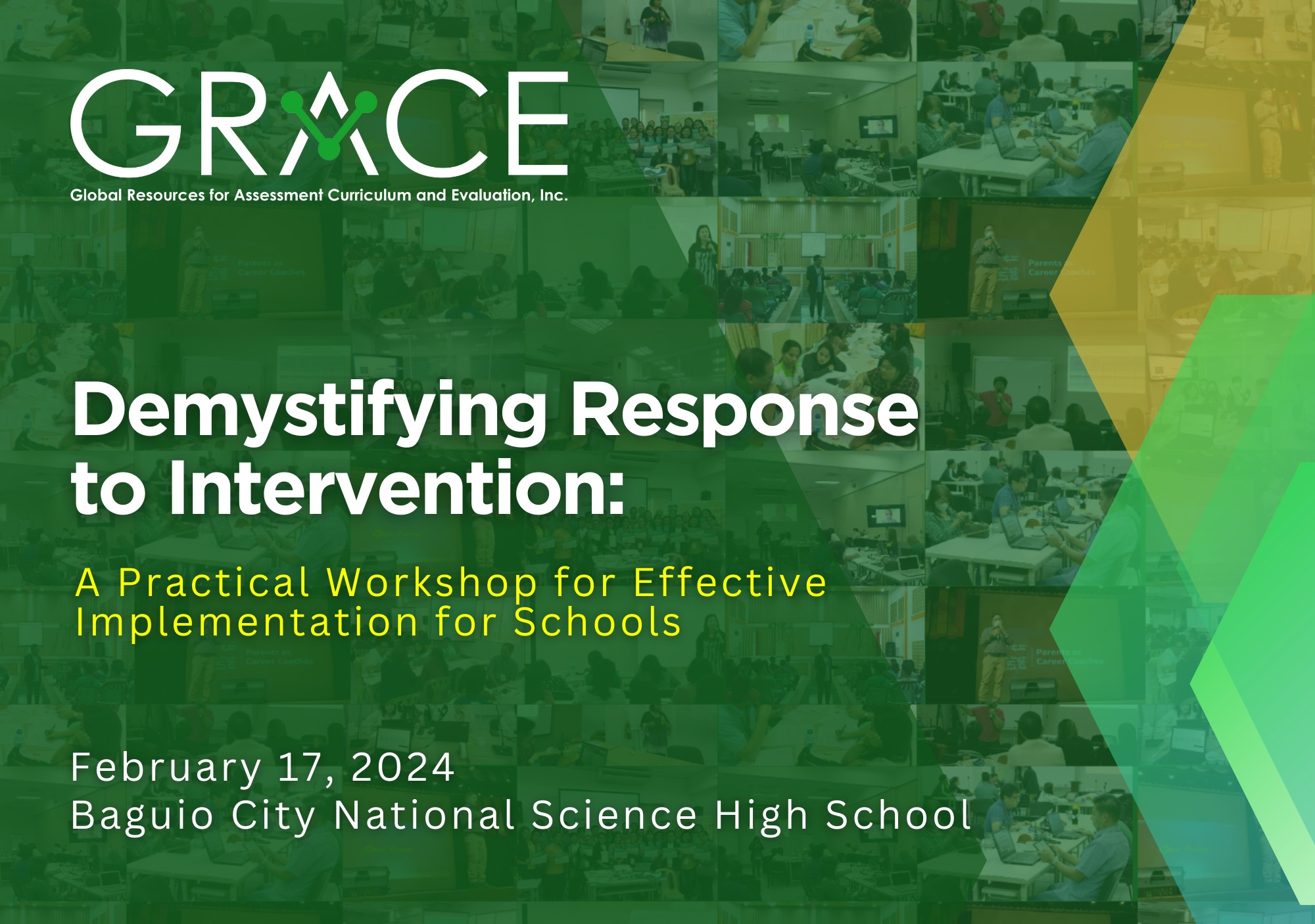 GRACE and PBEd held a professional development workshop at Baguio City National Science High School for DepEd Baguio educators. The training, “Demystifying Response to Intervention,” led by the Forasteros (Mr. Mark Forastero (Grade 7) and Ms. Hazel Forastero (Grade 1)), focused on practical tools for personalized learning to improve education quality.